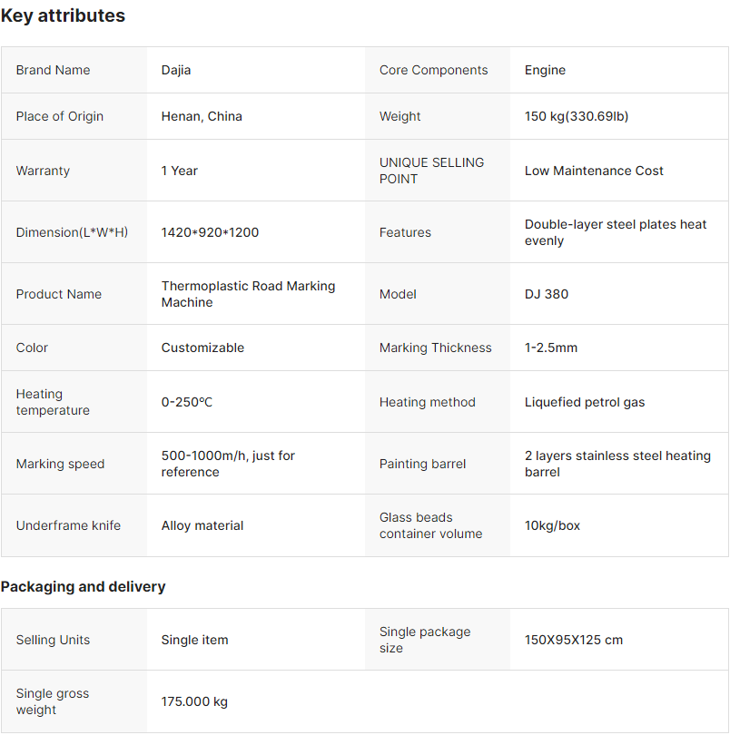 DJ380 Power-driven thermoplastic road marking machine is a kind of simply easy-used small size marking machine which is widely used in China and other developing countries or areas.
